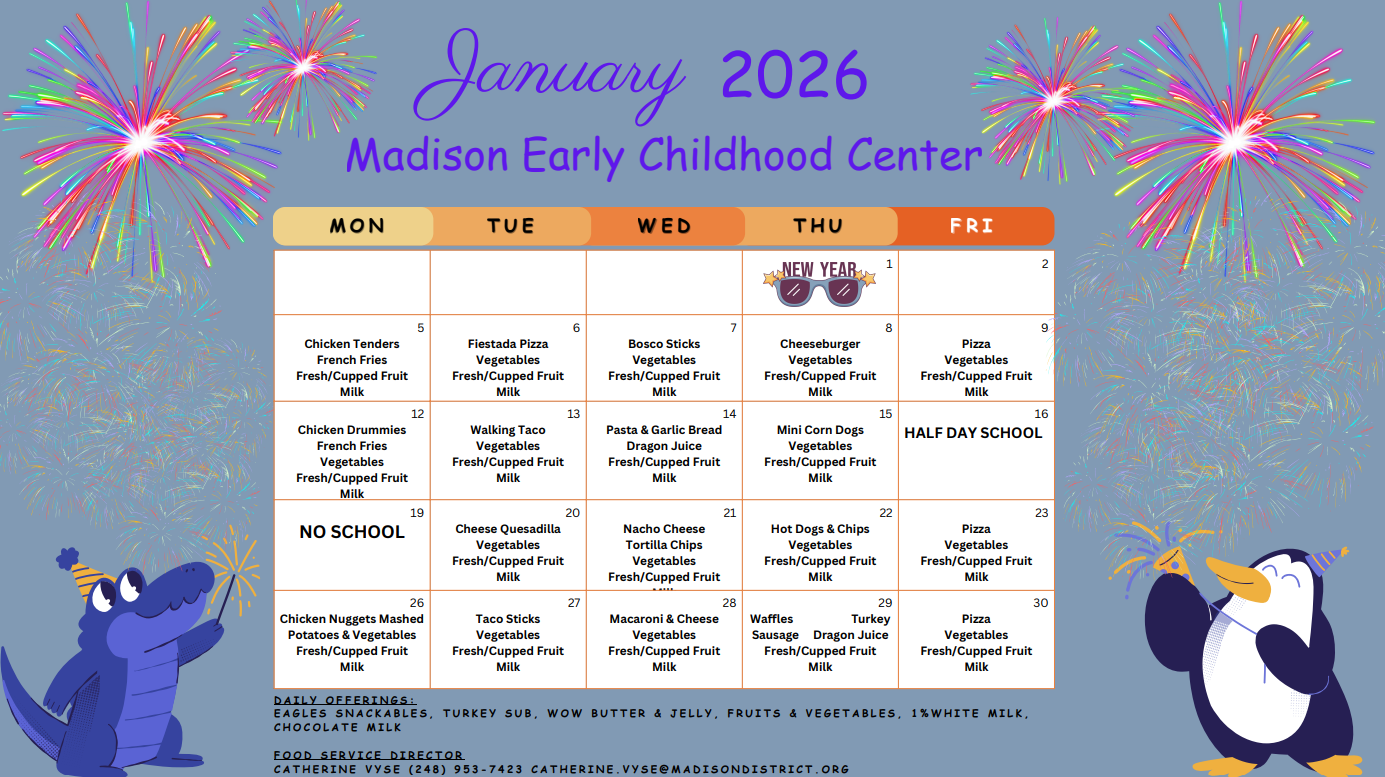 *Friday, January 16 ½ day of school. Dismissal at 11:45