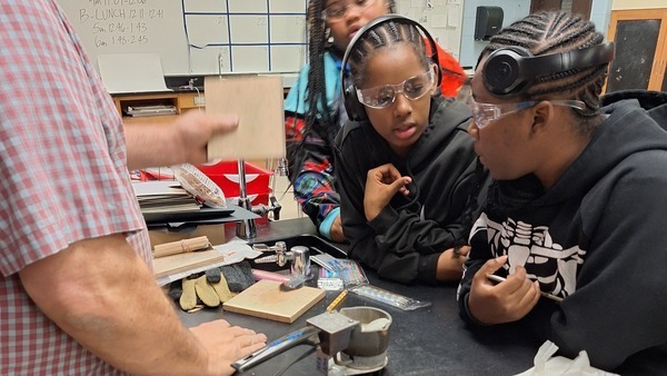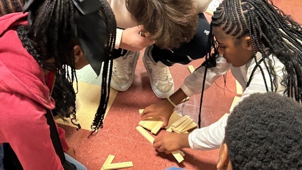 Here our students are working on one of the obstacle courses for their sphere-shaped robots called Sphero-bolt. These robots can be steered by using the edu program aligned with the robots. They connect with their bolt and then can drive them and program them to go in different directions. These robots can show words, play music and move through coding, drawing, or driving functions. They had a blast trying to control them.